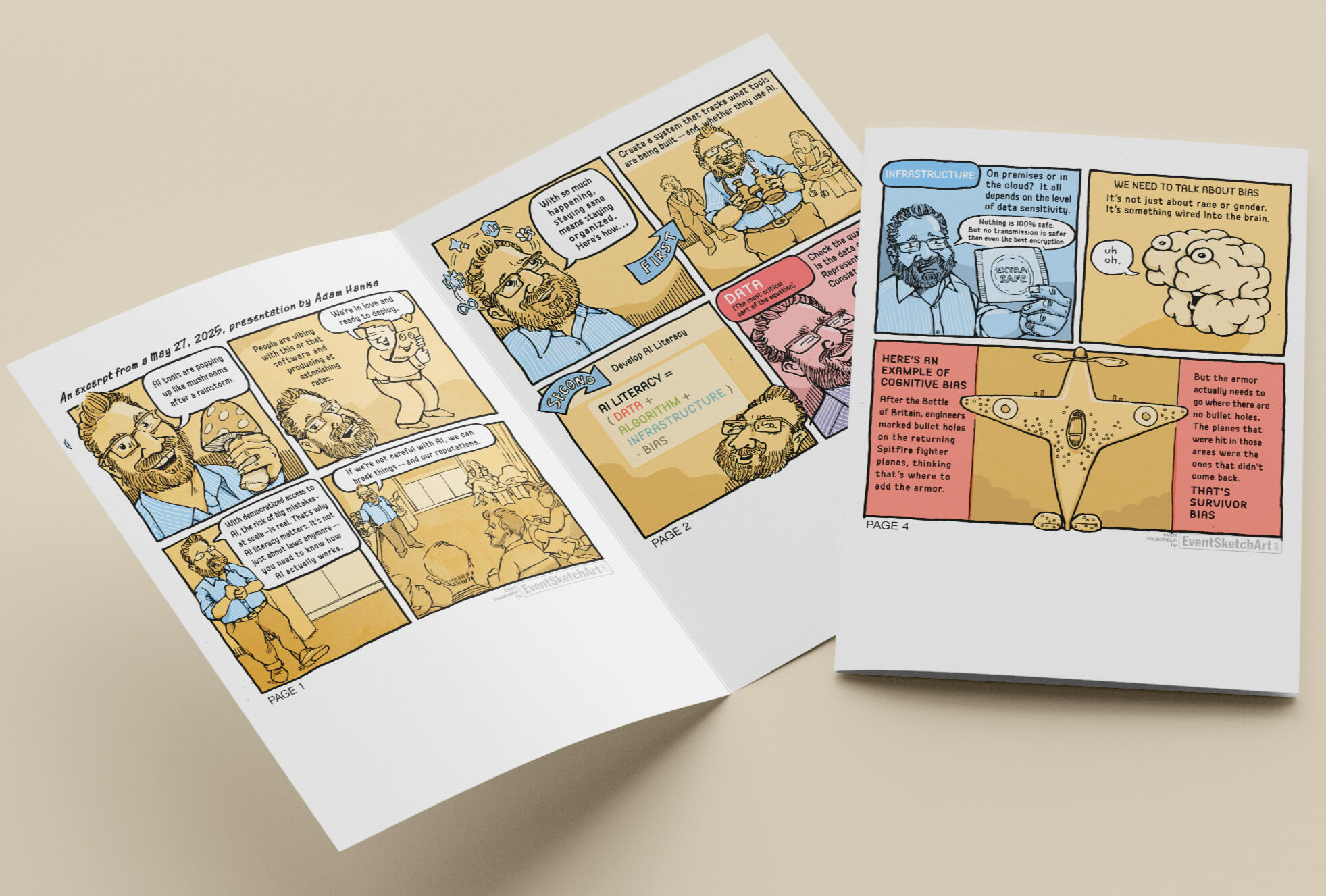 Ken Nash is an award-winning illustrator, cartoonist, and writer based in Prague. His live event sketches are known for their humor, artistic quality, and ability to capture the essence of a moment.With a broad background in tech, marketing, and communications, Ken combines storytelling and visual thinking to transform complex events into clear, compelling narratives that stick.